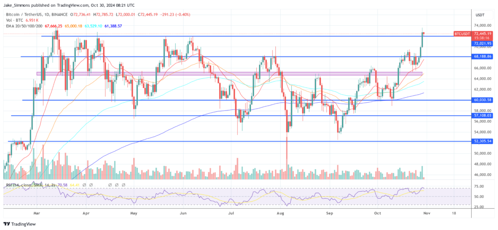 At press time, BTC traded at $72,445, up 23% in the last 20 days.
